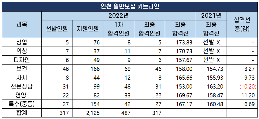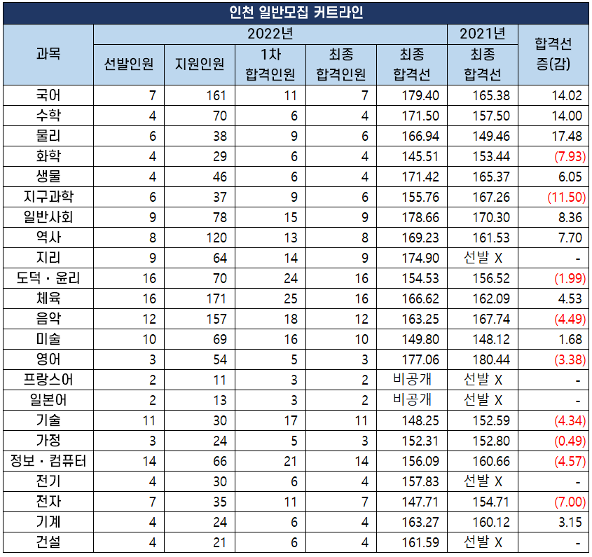 | 인천 일반모집 커트라인 | ||||