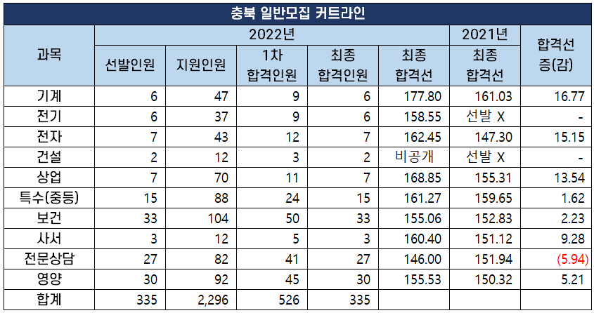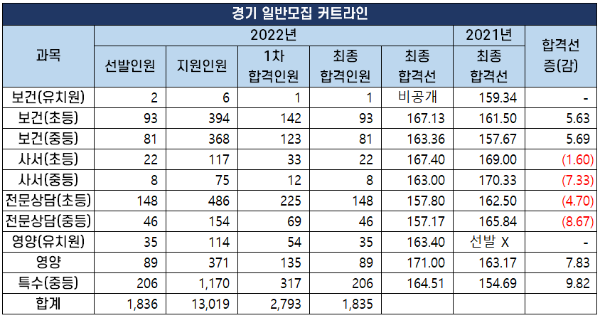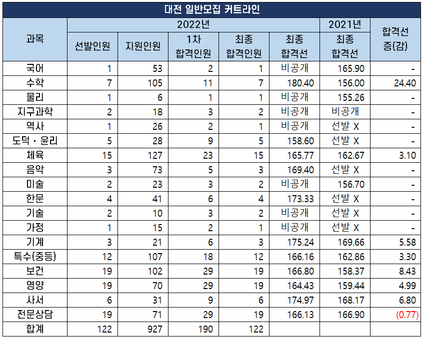 2022 과목별 중등임용고시 1차 커트라인(합격선) 분석