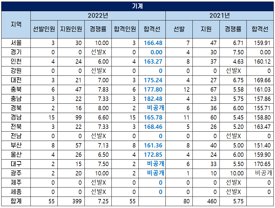 2022 중등임용고시 기계 커트라인