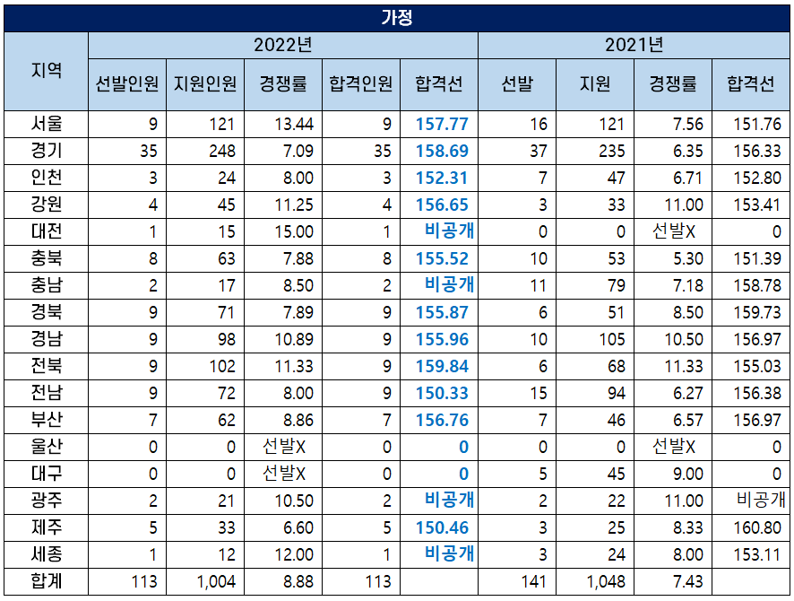 2022 중등임용고시 가정 커트라인