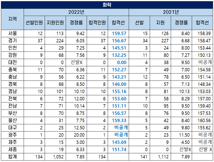 2022 중등임용고시 화학 커트라인