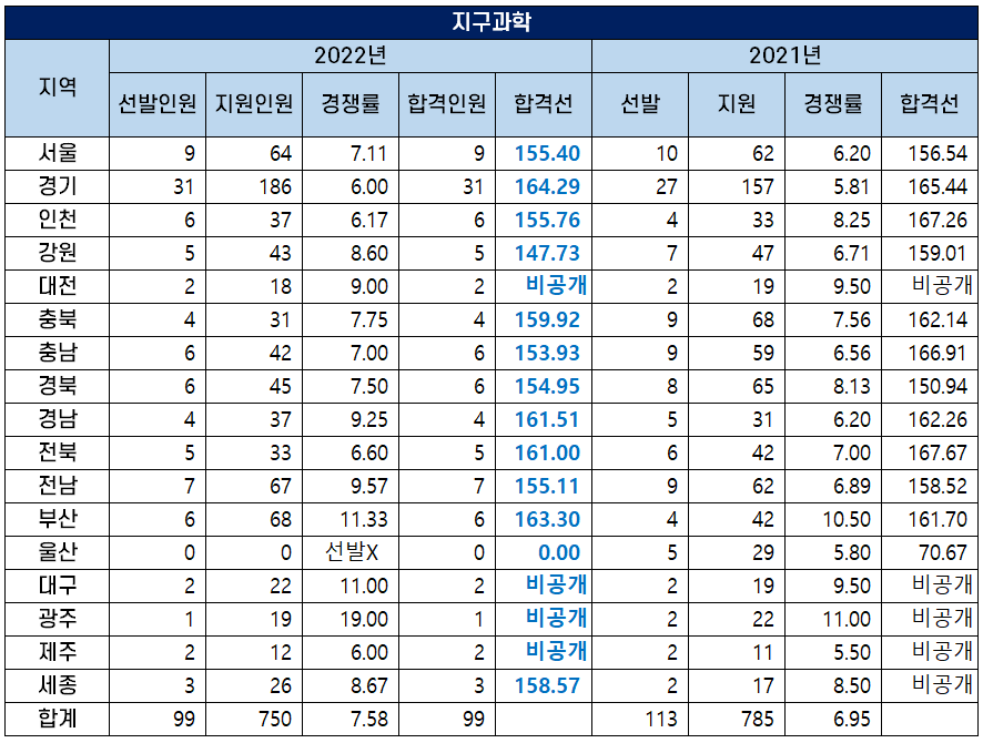 2022 중등임용고시 지구과학 커트라인