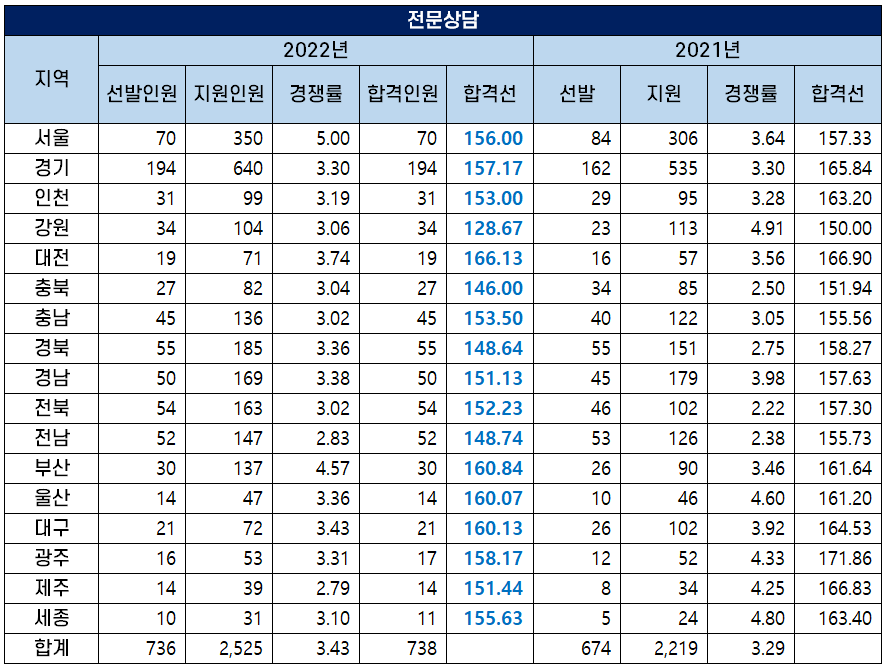 2022 전문상담 교사 커트라인