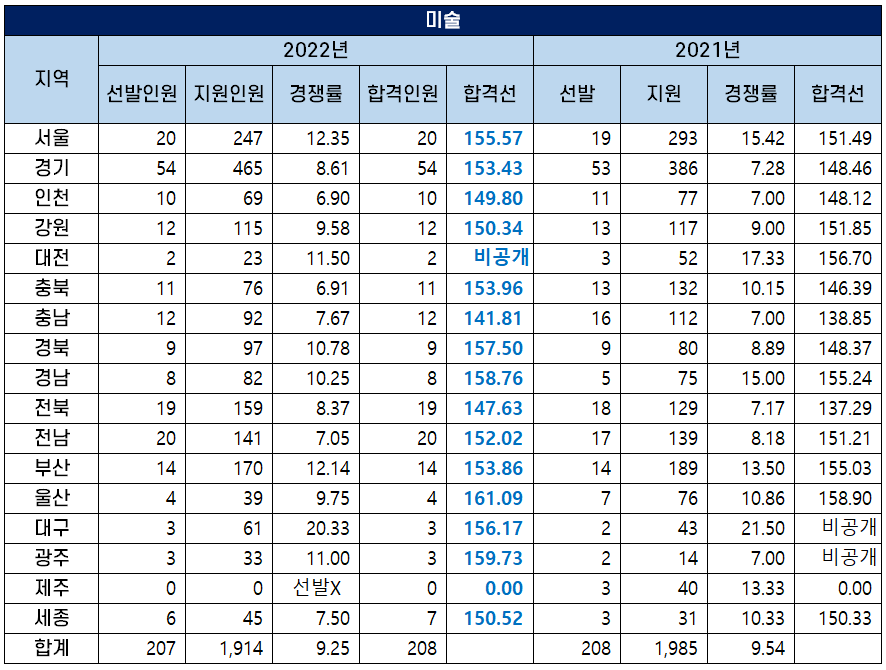 2022 중등임용고시 미술 커트라인