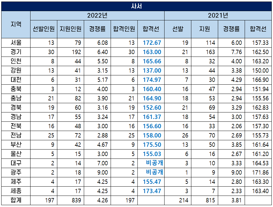 2022 사서 교사 커트라인