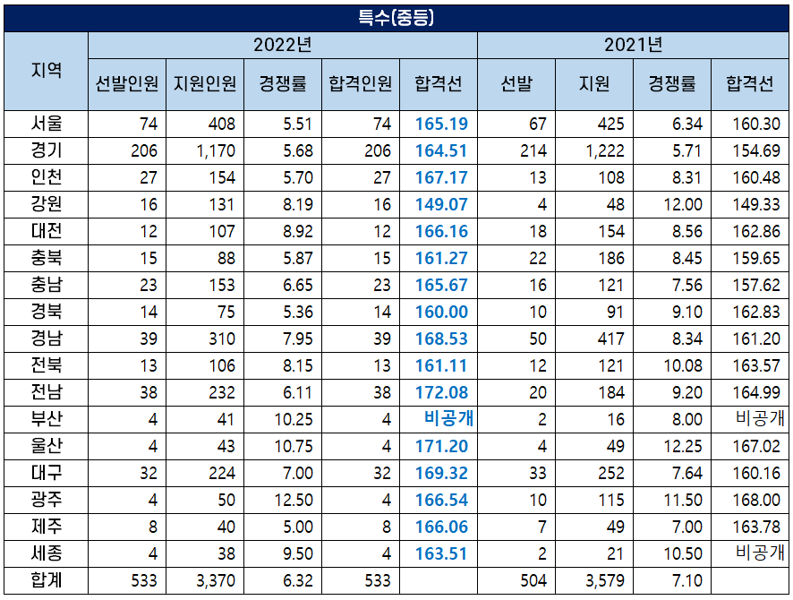 2022 특수(중등) 교사 커트라인