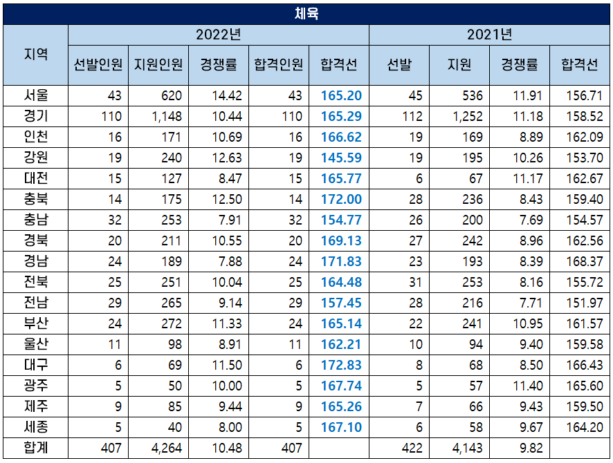 2022 중등임용고시 체육 커트라인