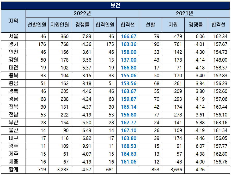 2022 보건 교사 커트라인