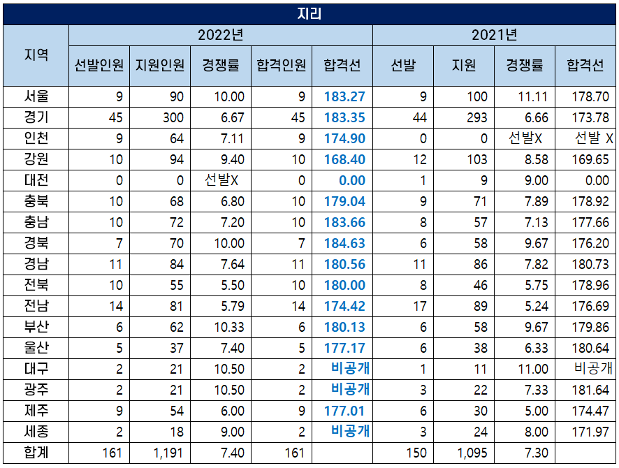 2022 중등임용고시 지리 커트라인