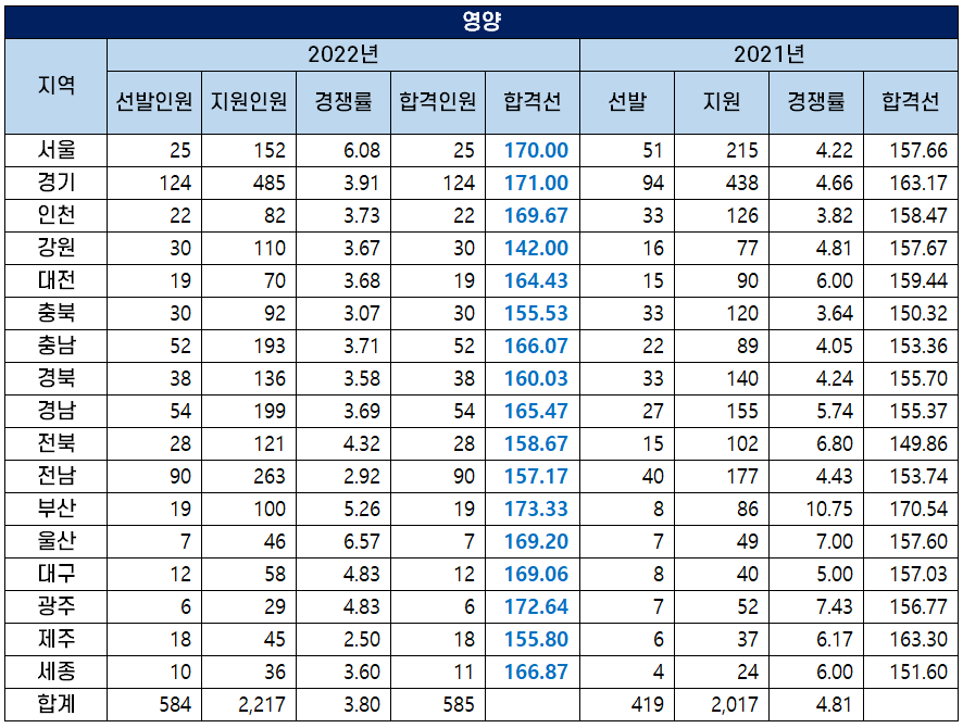 2022 영양 교사 커트라인