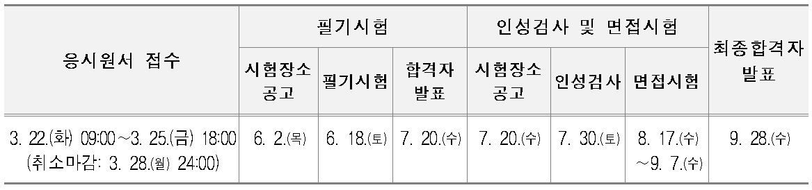 다른 지방직 공무원과 달리 거주지 제한이 없는 서울시 9급 공무원은 대한민국 국적 소지자로서 만 18세 이상(2004년 12월 31일 이전 출생자)이면 누구나 응시할 수 있는 시험이기 때문에 국가공무원 다음으로 많은 공시생이 관심을 갖는 시험인데요. 원서접수기간, 필기시험, 인성검사, 면접시험 등 2022년 서울시 9급 공무원 시험 일정은 아래 표와 같습니다.