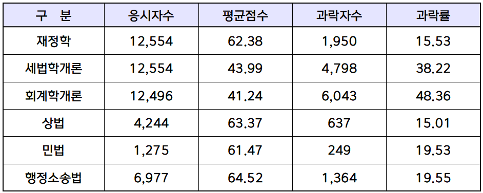 2021년 제58회 세무사 1차 시험 합격률 및 난이도