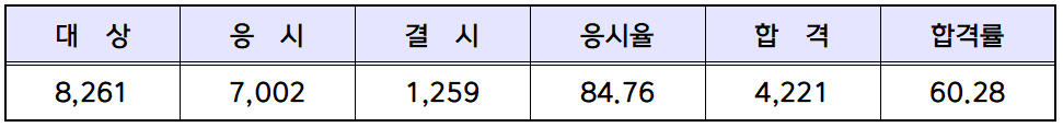 8,261명의 지원자 중 7,002명이 노무사 1차 시험에 응시해 4,221명이 합격함으로써 60.28%의 높은 합격률을 기록했습니다. 노무사 1차 시험의 합격률이 60%가 넘었던 경우는 2011년(제20회), 2016년(제25회) 시험에 이어 세번째입니다.
