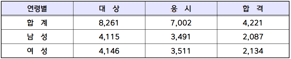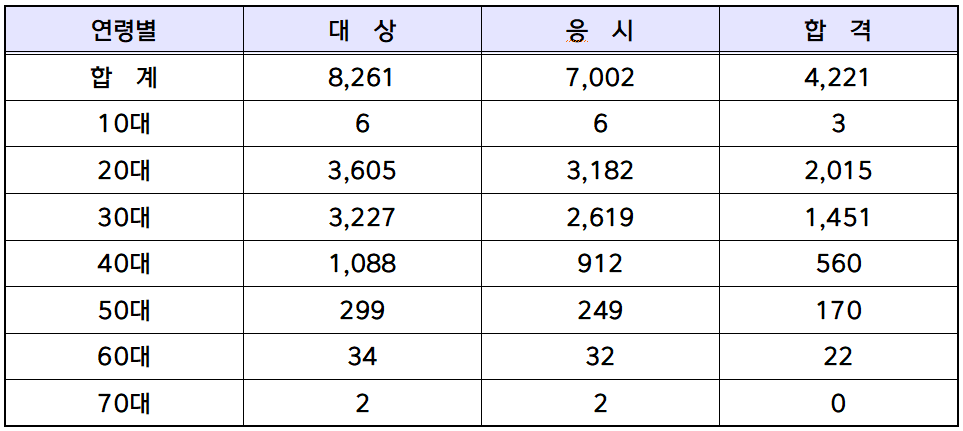 10대 합격자도 3명, 60대 합격자도 22명이나 배출되었습니다.