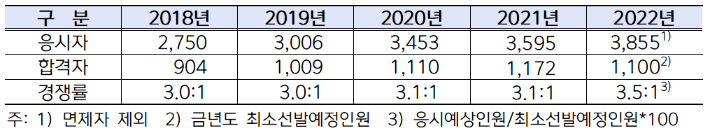 합격자의 63.1%에 해당하는 1,399명이 대학 재학 중에 1차 시험을 합격한 것으로 나타났습니다.