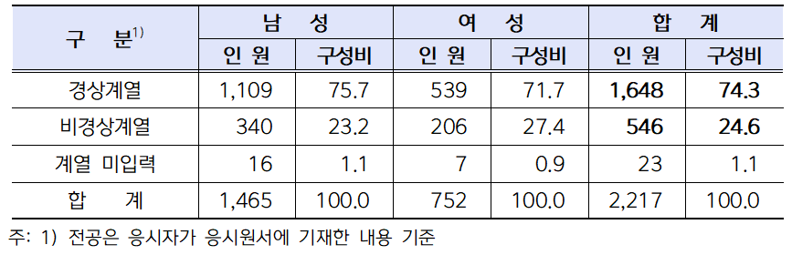 합격자 중 74.3%가 상경계열을 전공했습니다.