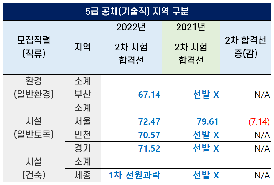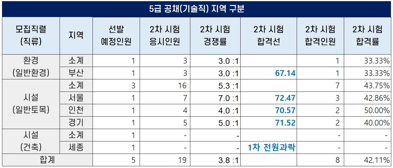 2022년 기술직 5급 공채 경쟁률 및 3차 면접 시험 최종 합격자 현황은 아래 포스팅을 참고하세요.