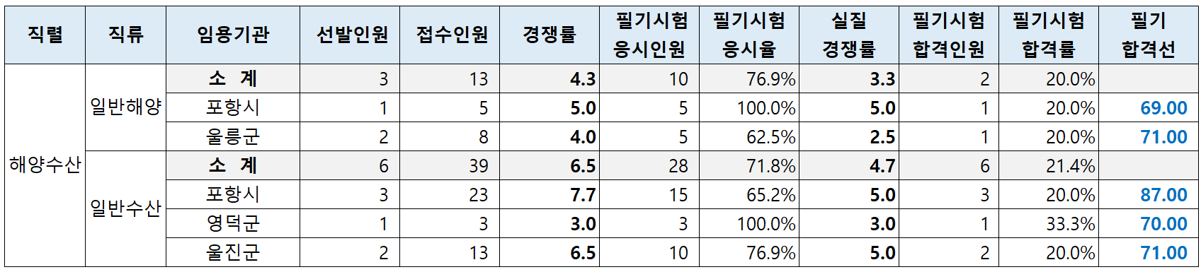 해양수산(일반해양, 일반수산) 경쟁률 및 합격선
