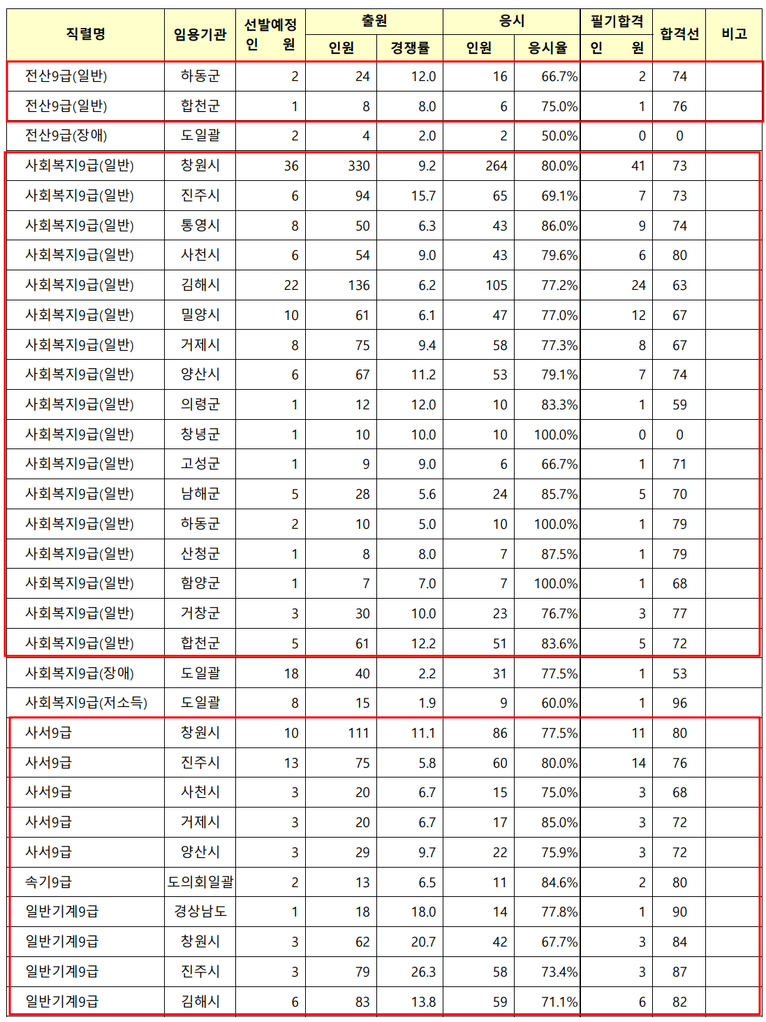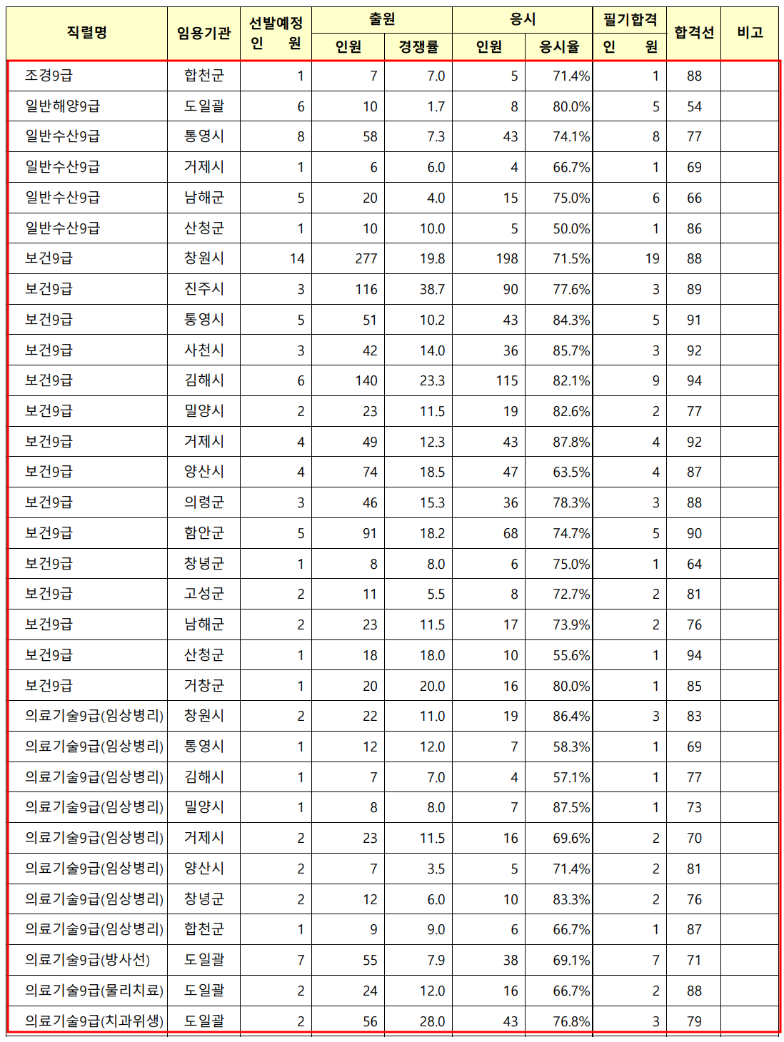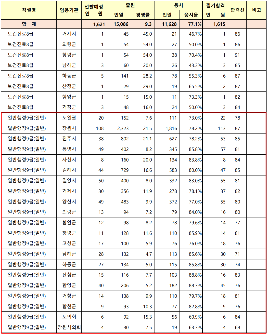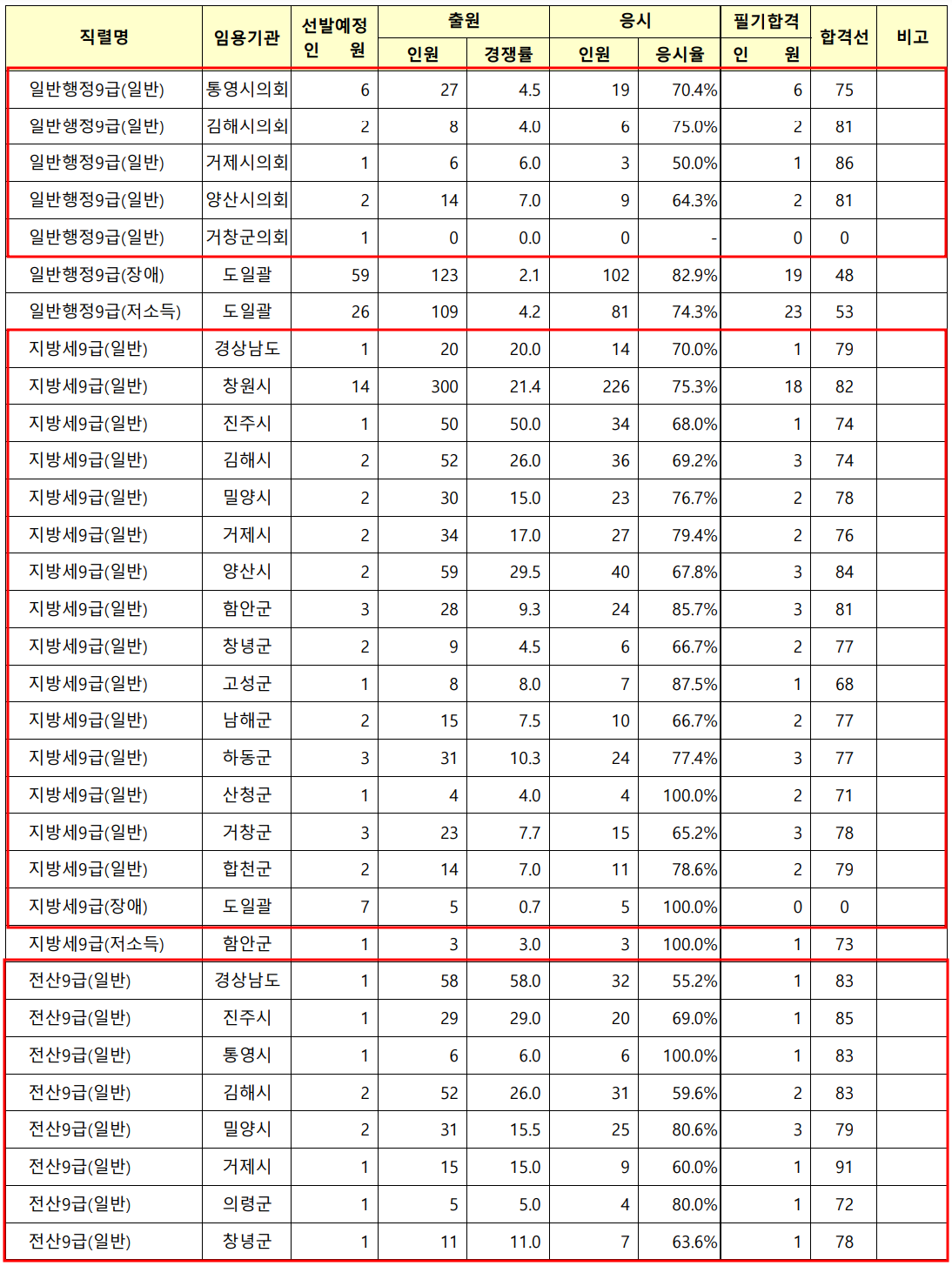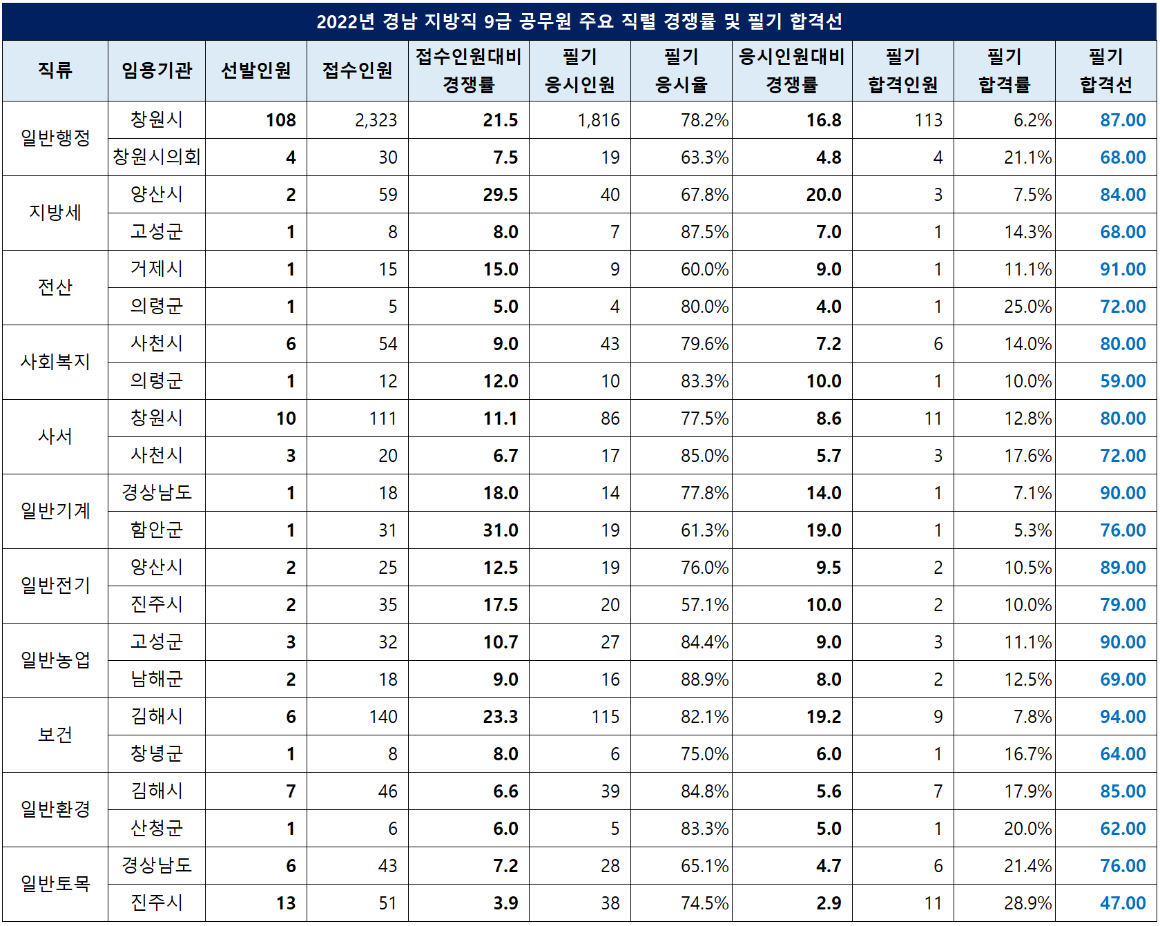 2022년 경남 지방직 공무원 9급 공채 합격선 및 경쟁률