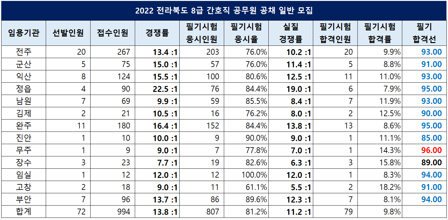 전라북도 간호직 공무원 경쟁률 및 합격선