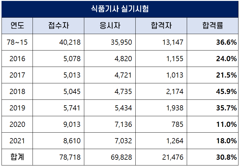 2021년 식품기사 합격률 (+ 역대 필기 및 실기 합격률)