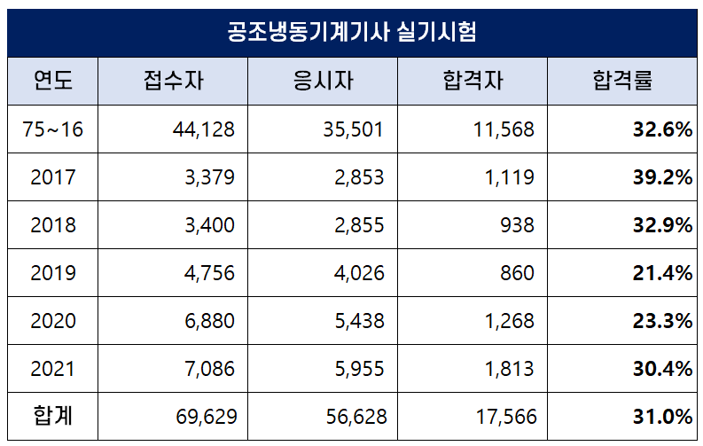 공조냉동기계기사 필기 합격률