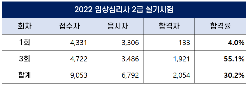 2022년 임상심리사 2급 합격률