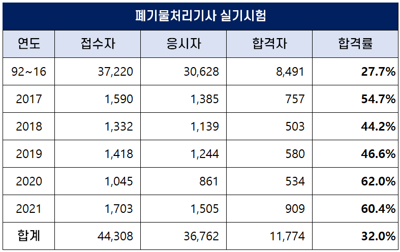 폐기물처리기사 실기 합격률