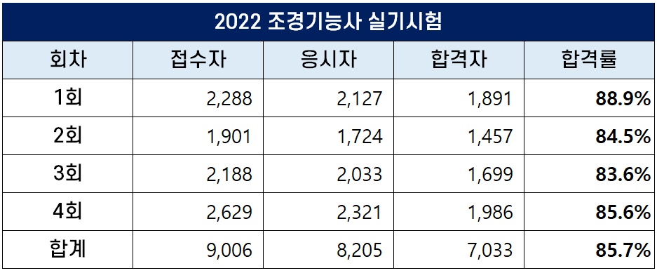 2022년 조경기사 합격률 (1회, 2회, 4회 필기 및 실기)