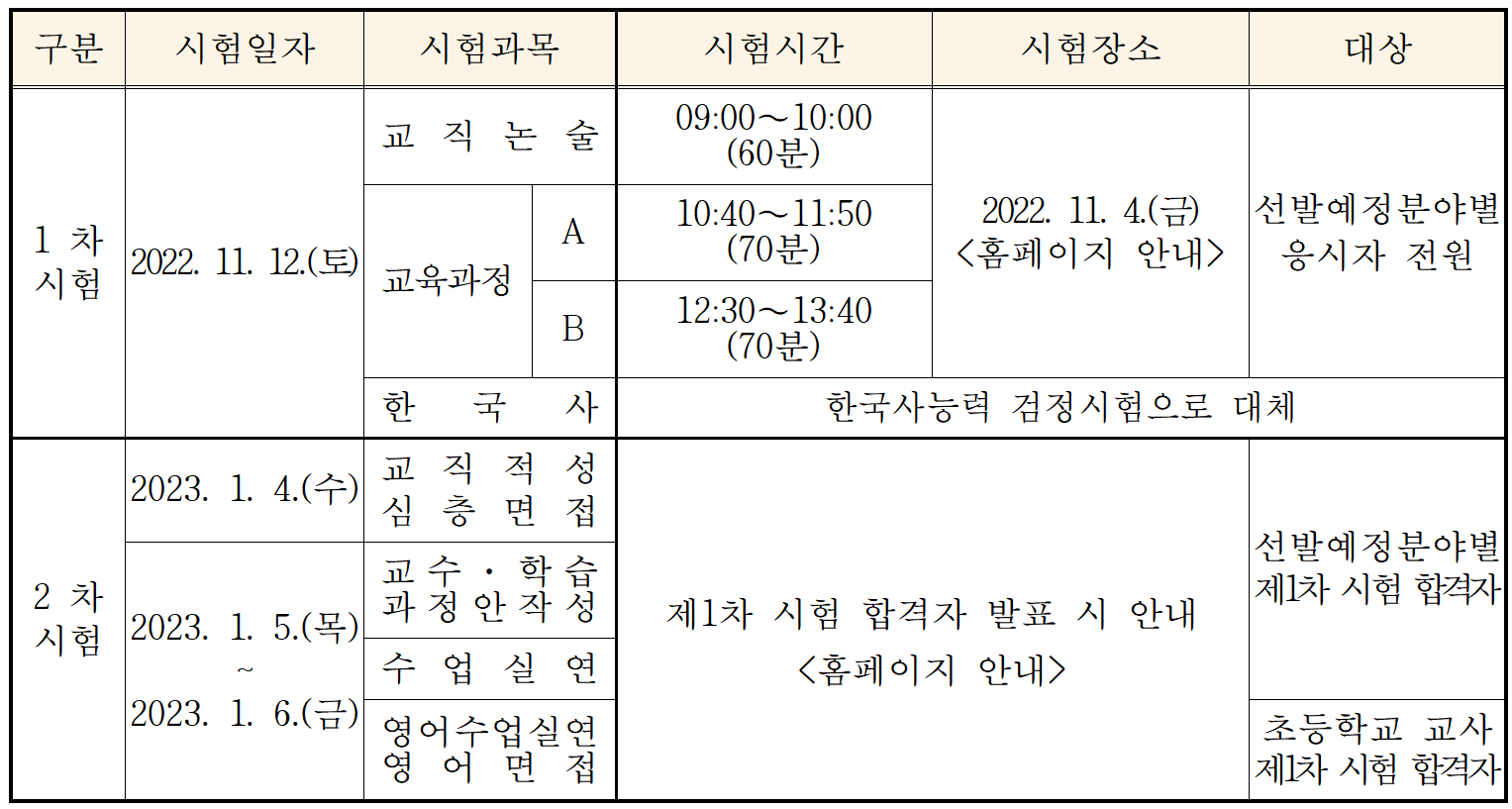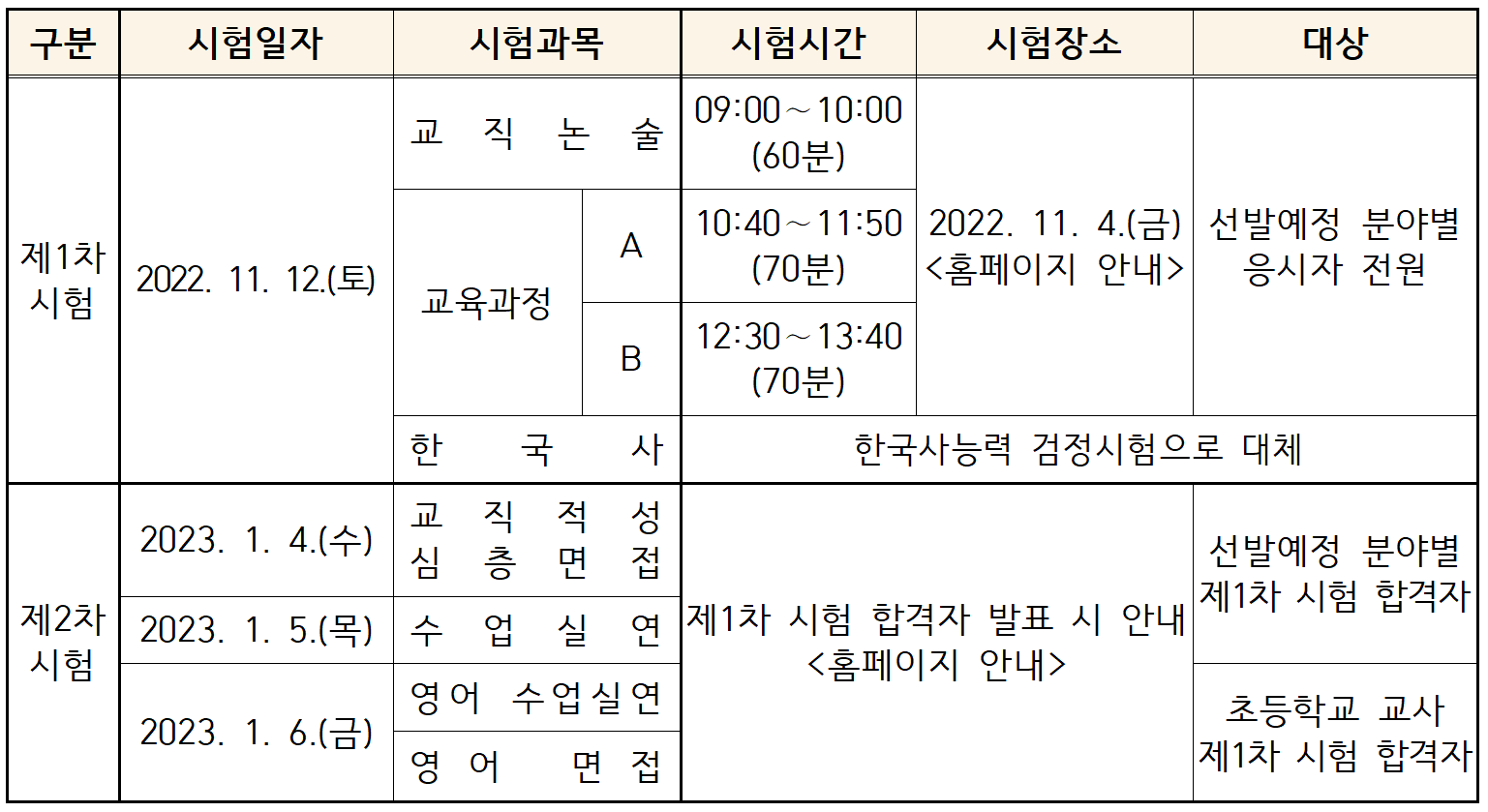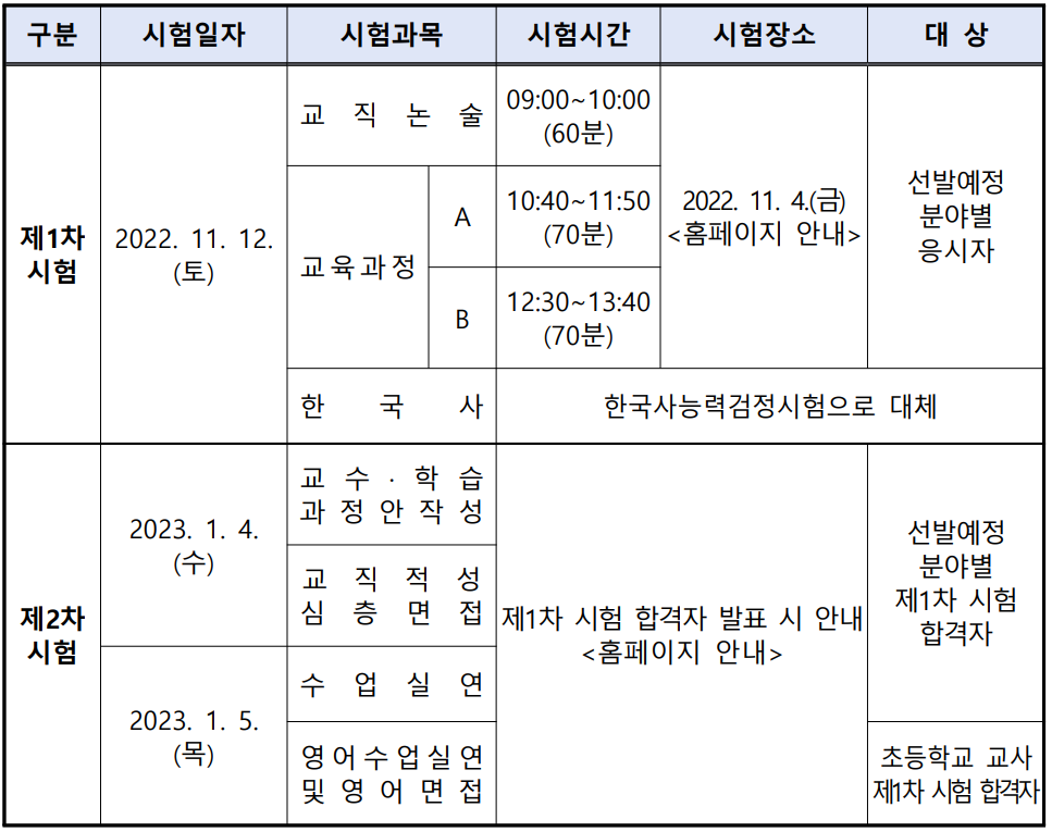 - 1차 시험 장소 공고: 2022. 11. 4.(금) 10:00
