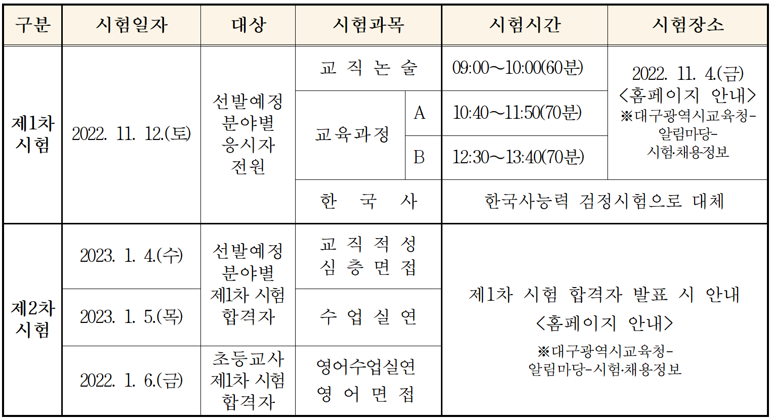 - 1차 시험 장소 공고: 2022. 11. 4.(금) 10:00