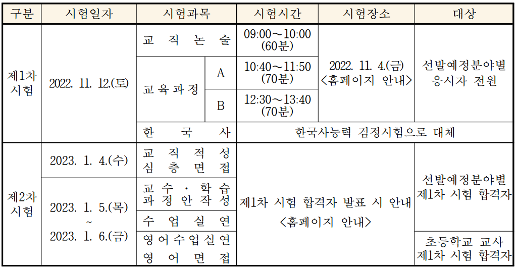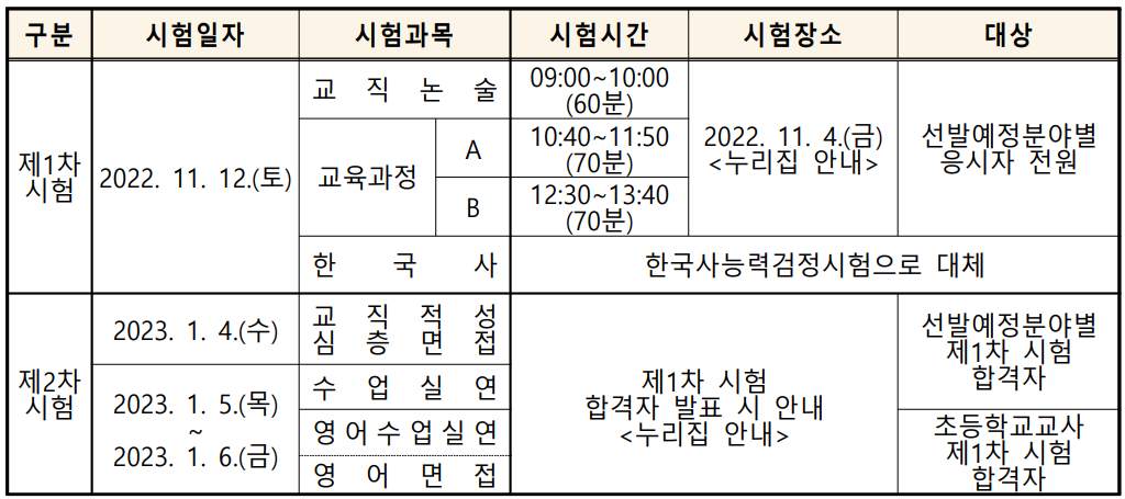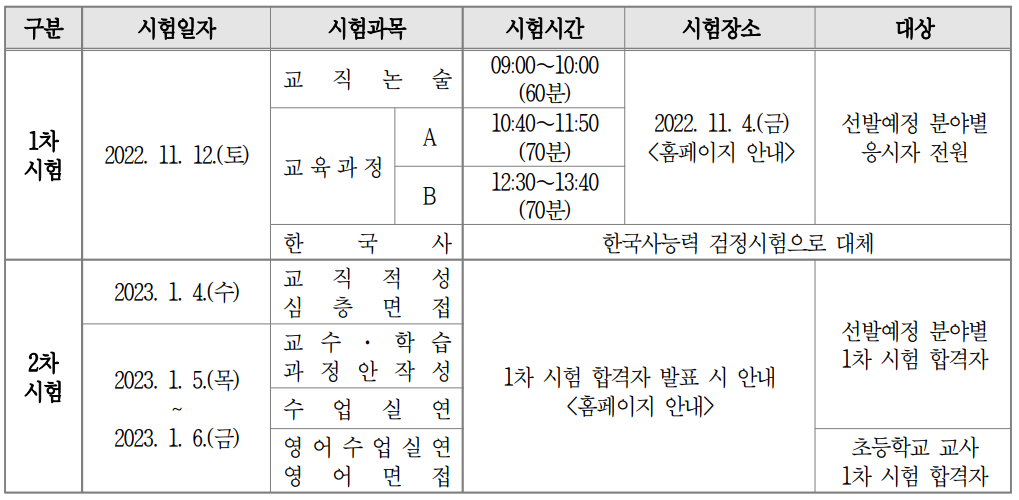 - 2차 시험일: 2023. 1. 4.(수) ~ 1.6.(금)