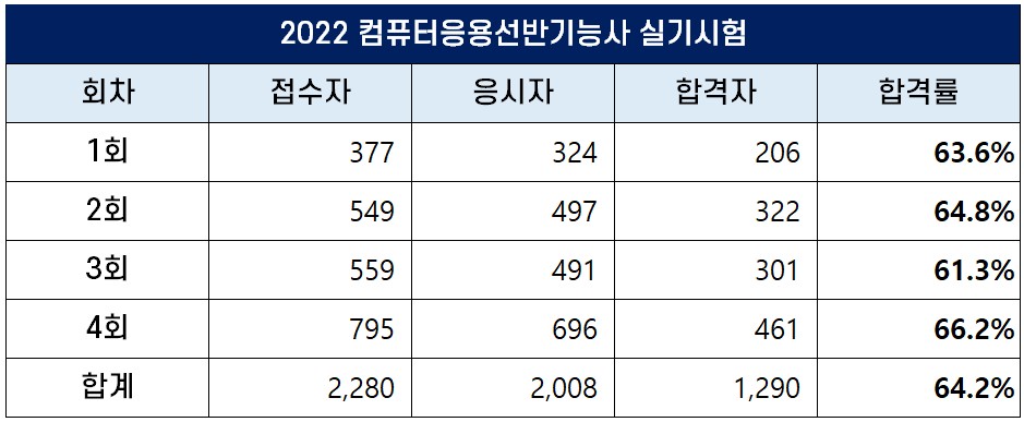 2023년 컴퓨터응용선반기능사 합격률컴퓨터응용선반기능사는 매년 4회의 필기시험과 실기시험을 시행하고 있는데요. 한국산업인력공단(Q-Net)이 시행하는 정기 기능사 1회, 2회, 3회, 4회 시험 일