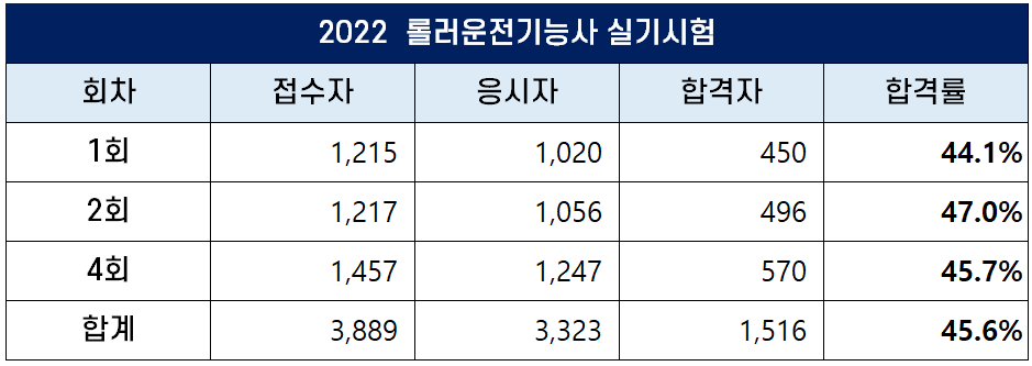 2022년 롤러 운전기능사 합격률