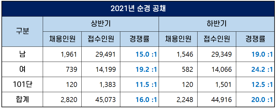 2021년 경찰공무원 경쟁률 총정리 (+ 여경 경쟁률 및 17개 지방청 순경 공채 시험 경쟁률)