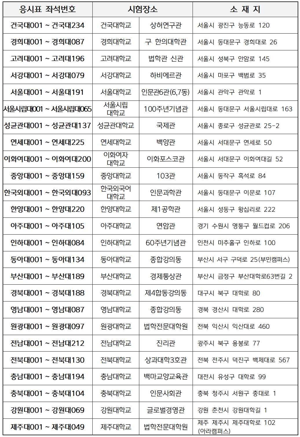 변호사시험은 로스쿨이 있는 25개 대학에서 시행됩니다.