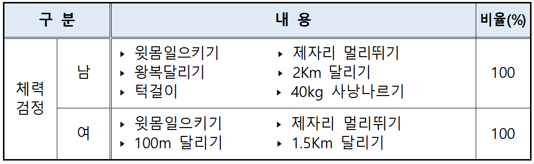 변경된 체력검사 기준표는 아래 포스팅을 보시기 바랍니다.