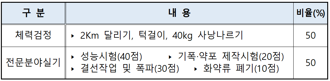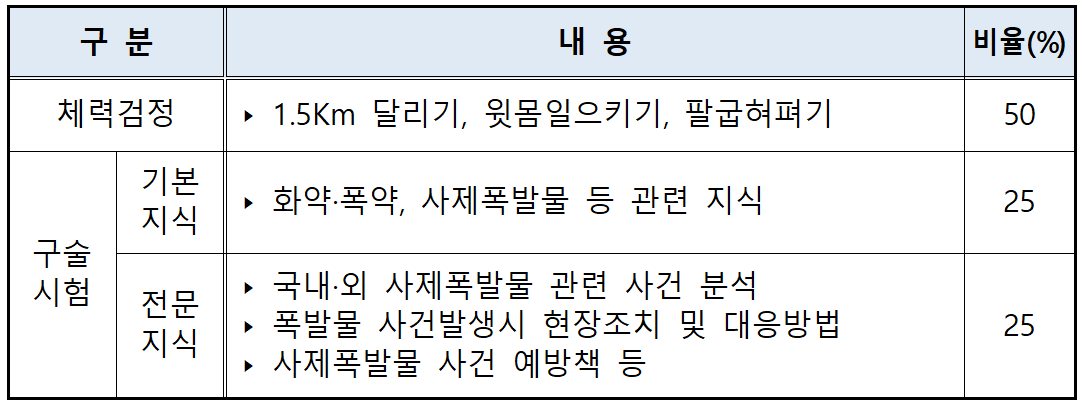 ◎ 폭발물 처리요원 실기 평가 기준 및 배점 비율
