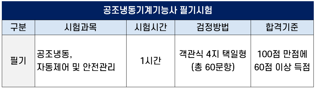 공조냉동기계기능사 필기시험 정보