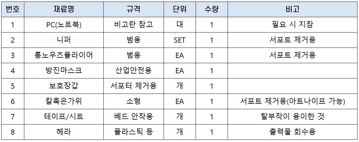 실기시험에 응시하는 수험생은 아래 지참 준비물 규격에 맞추어 준비해야 하는데요. 개인 PC를 지참해 실기시험을 볼 수도 있습니다.