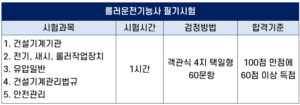 롤러운전기능사 필기 시험 정보