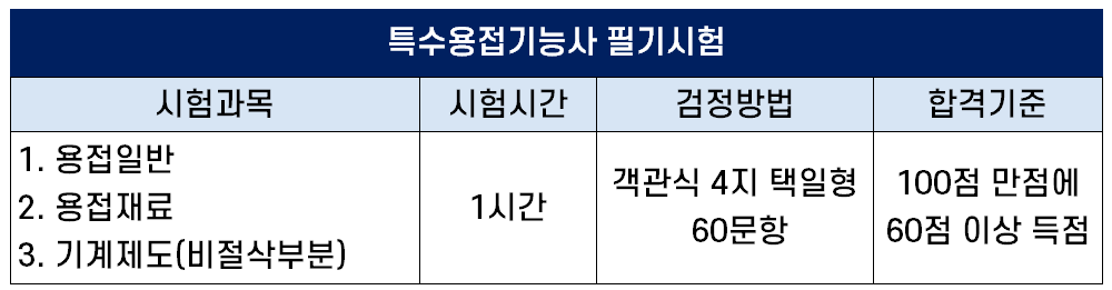 특수용접기능사 필기 시험 정보