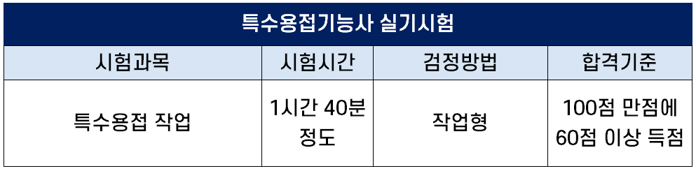 특수용접기능사 시험 정보
