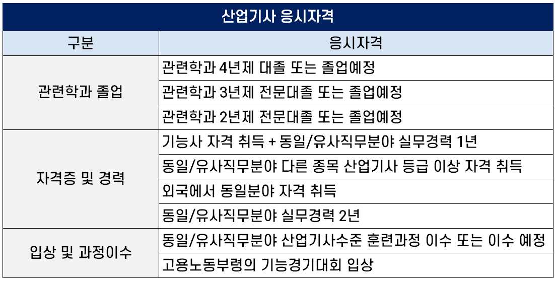 산업 기사 응시 자격 (관련학과, 경력, 자격증, 기능경기 대회 입상)