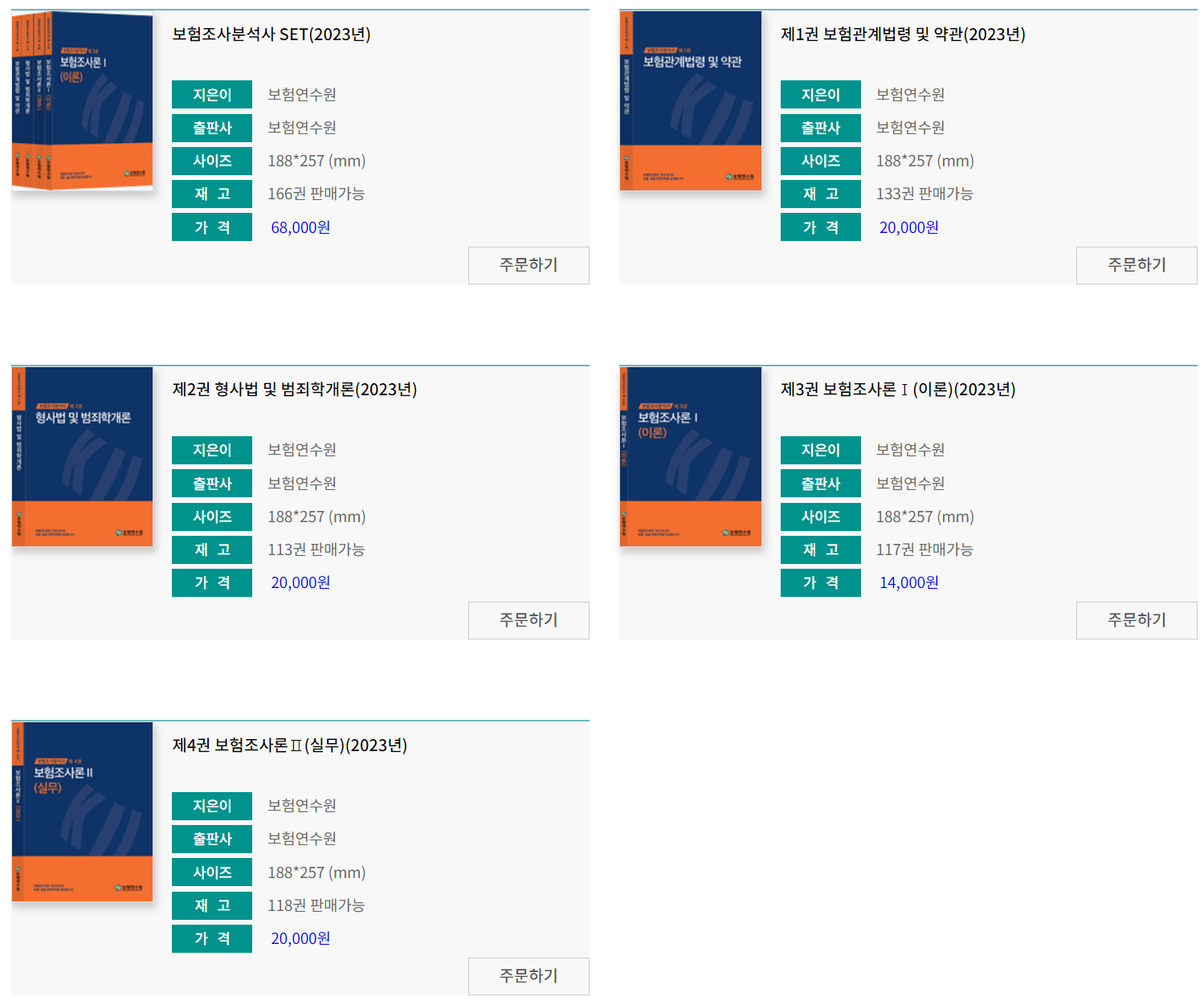 보험조사분석사 자격시험 문제는 시험을 시행하는 보험연수원이 발간한 표준교재 내용을 바탕으로 출제하며, 별도의 기출문제나 예상문제는 공개하지 않고 있습니다.