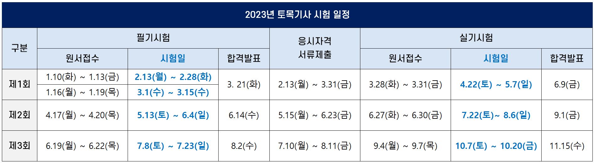 2023년 제1회 토목기사 필기시험은 응시자격을 갖춘 시기에 따라 원서접수기간과 시험일이 다르기 때문에 주의가 필요한데요.