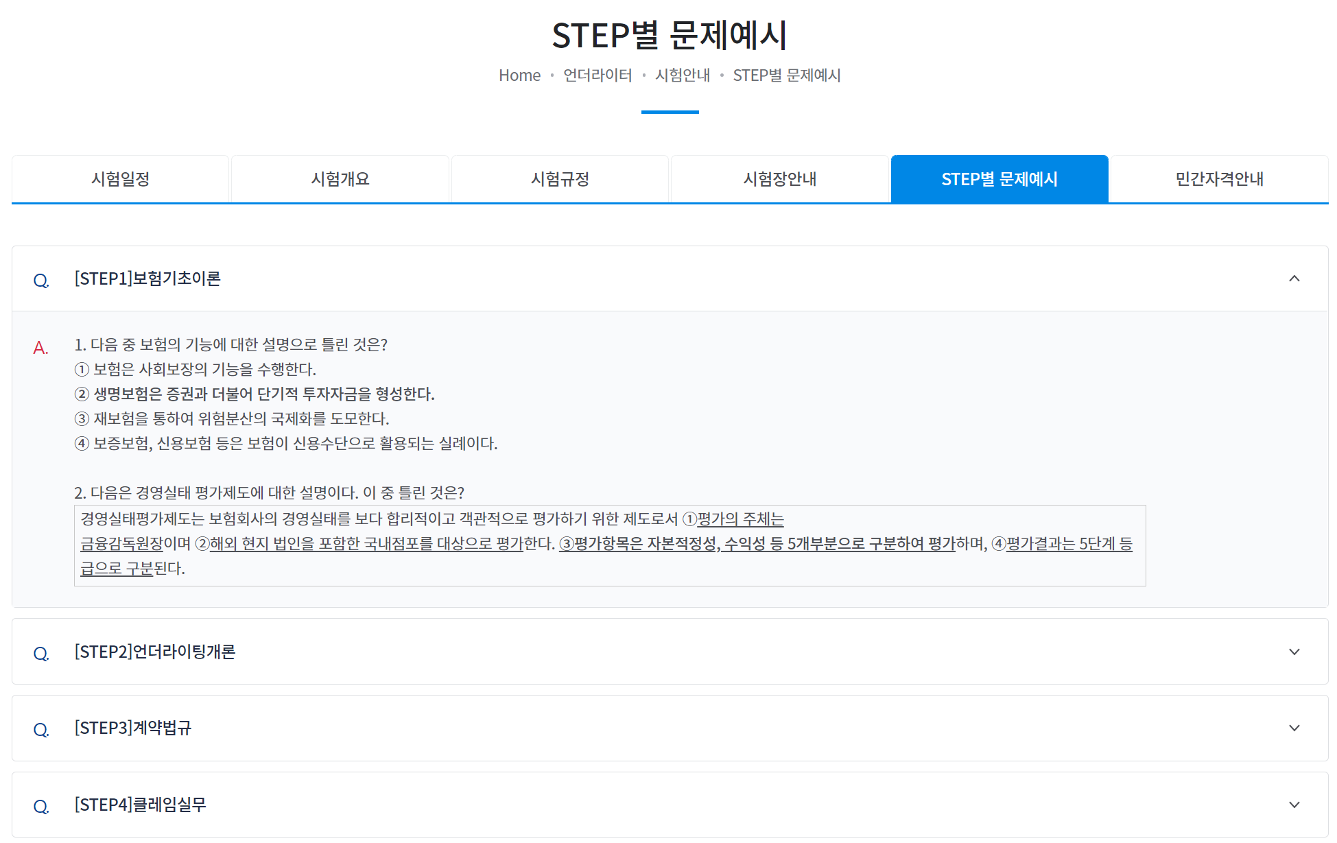 시험과목마다 예시 문제는 생명보험협회 자격시험센터에서 볼 수 있습니다.