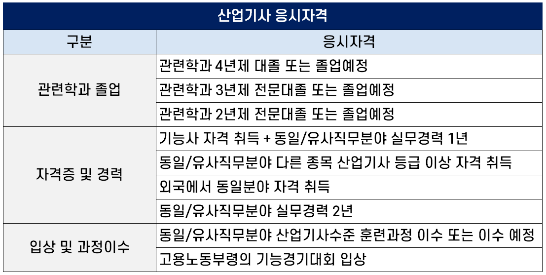 산업 기사 응시 자격 (관련학과, 경력, 자격증, 기능경기 대회 입상)
