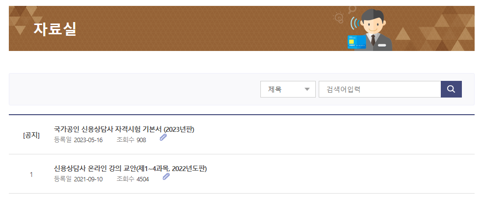 신용상담사 지격시험 기본 교재는 신용회복위원회 신용교육원 홈페이지에서 무료로 다운로드받을 수 있습니다(아래 그림 클릭시 신용교육원 자료실로 이동).