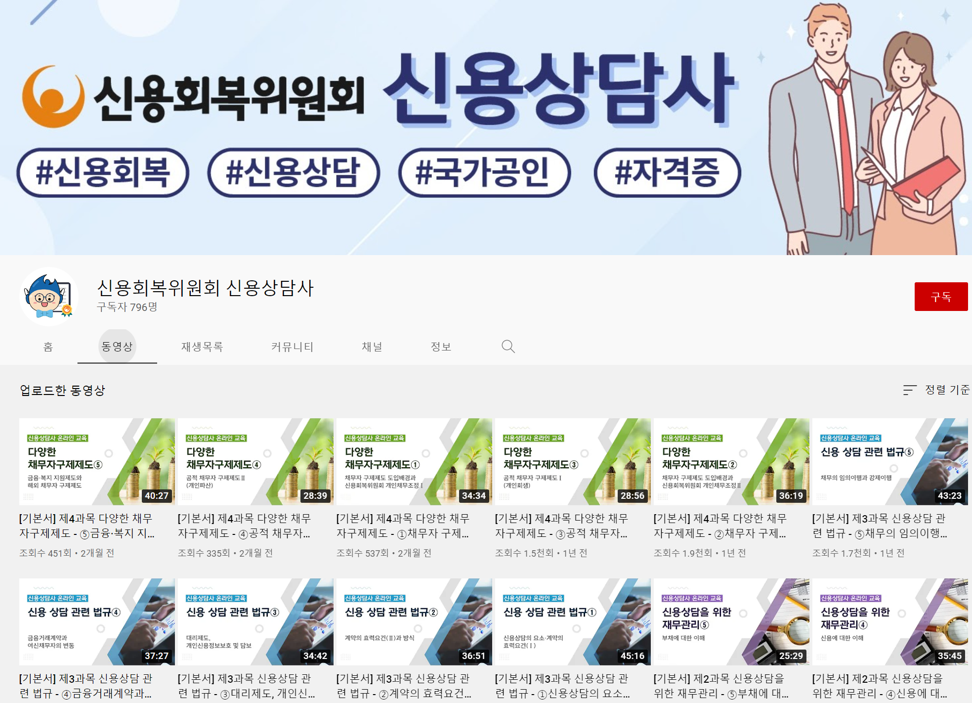 또한 신용회복위원회 신용상담사 온라인 강의 동영상을 유튜브 채널에서 무료로 수강할 수 있으며 위 자료실에서 강의 교안도 다운로드 받을 수 있습니다.